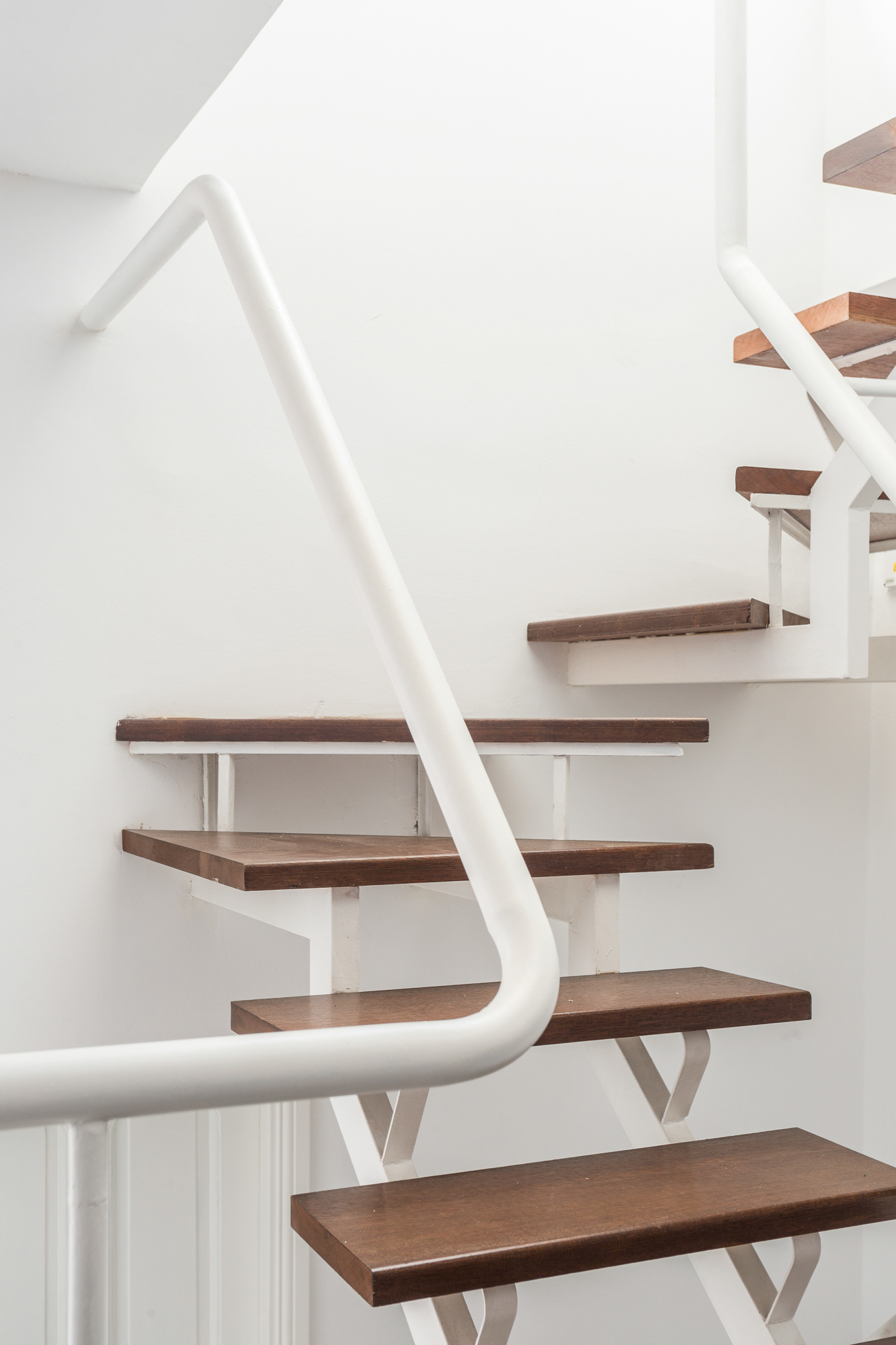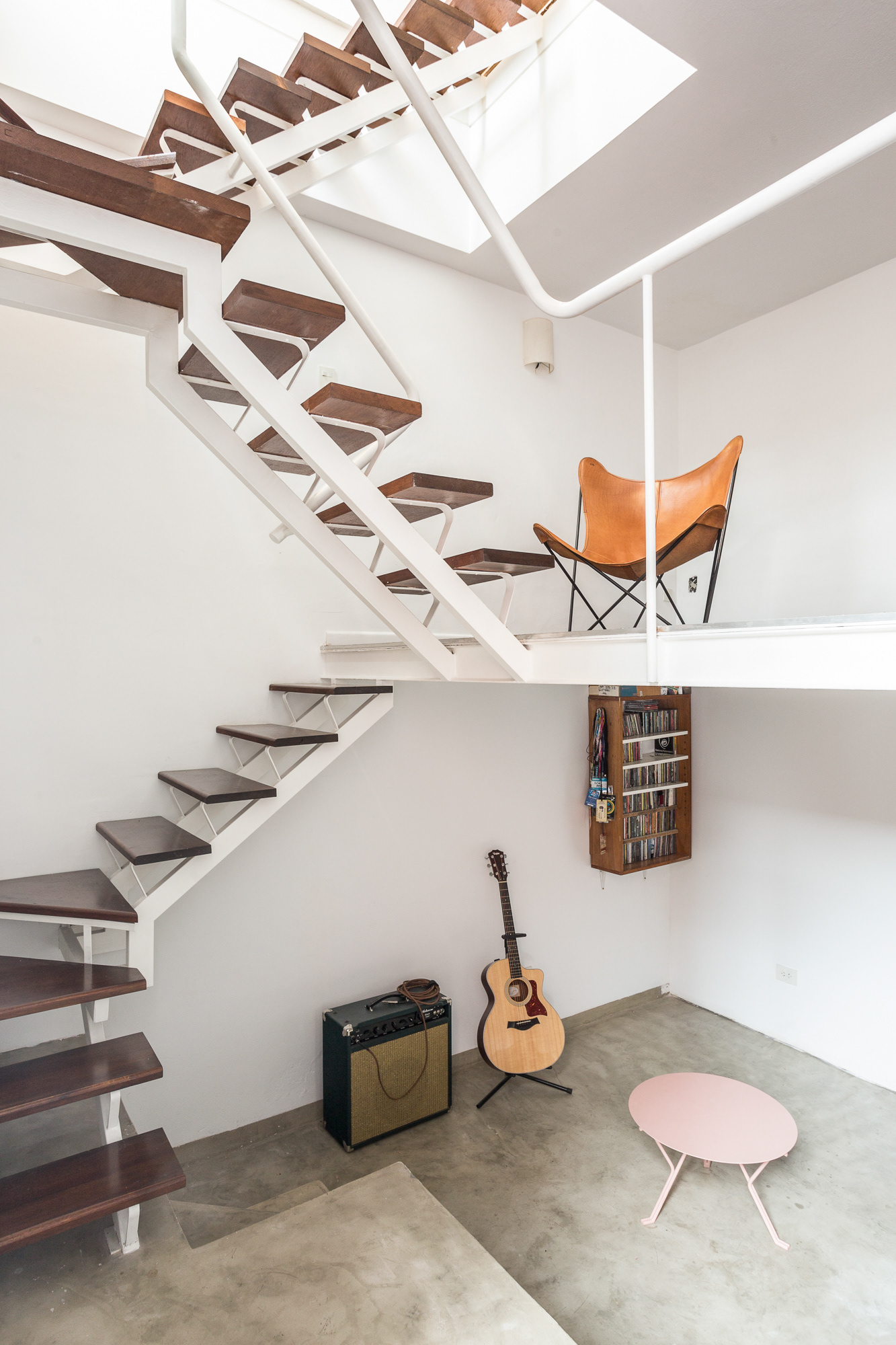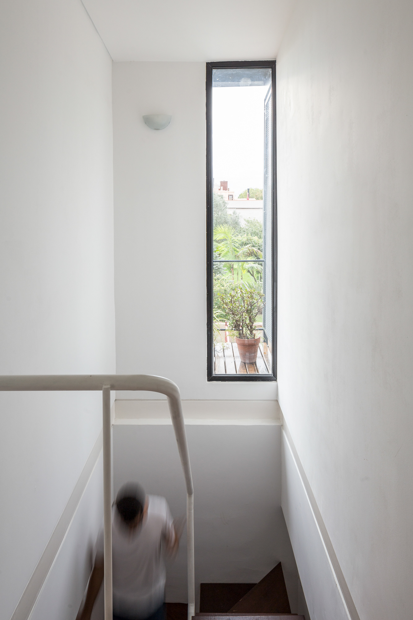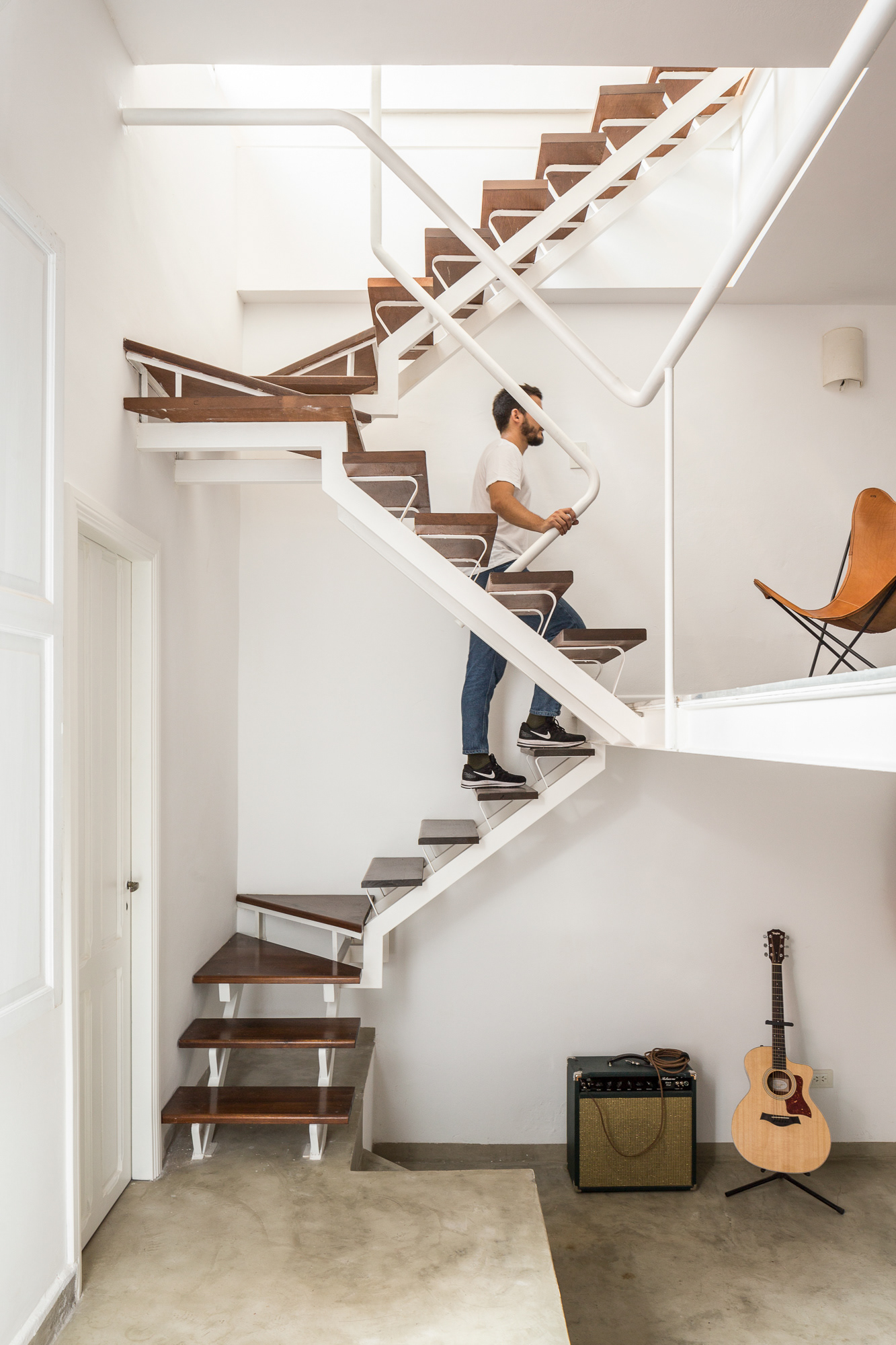 The staircase, conceived as the final element of the intervention, not only resolves the vertical connection between the new and existing areas—both public and private—but also allows natural light to reach the ground floor, redefining the spatial character and everyday use of the original house.