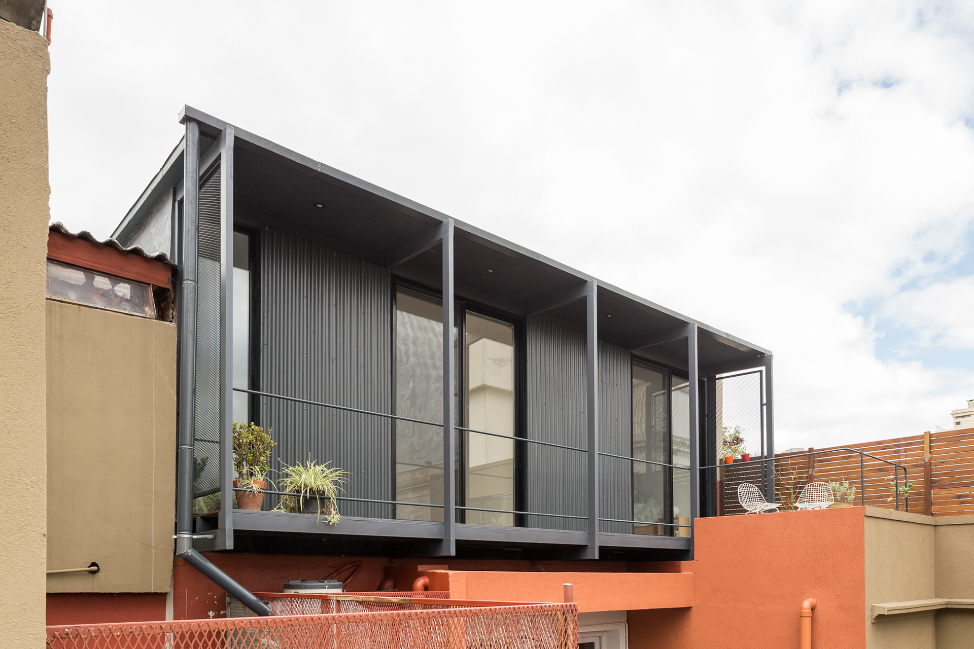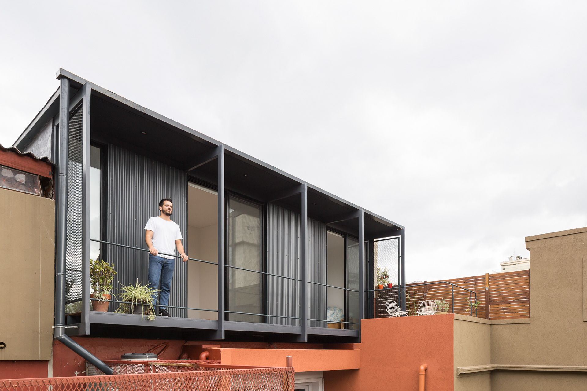 The rooftop above the main rooms—previously inaccessible—was identified as the ideal location for the extension. The intervention materializes as a lightweight new volume, clearly differentiated from the original structure through its architectural language, materiality, and color.